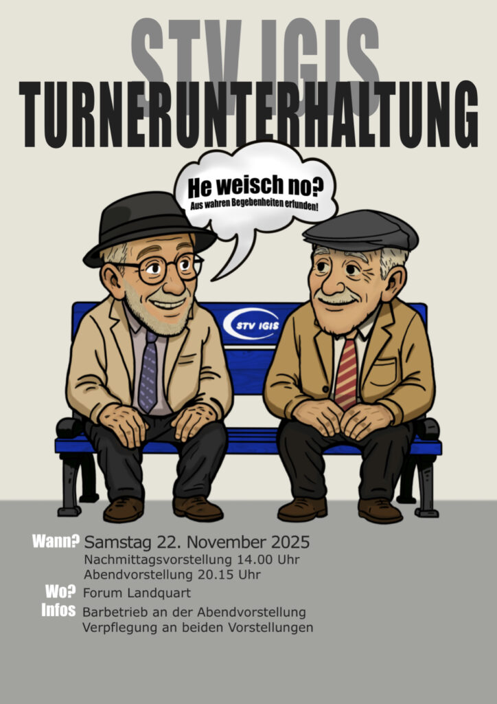 Am 22. November 2025 findet die Turnerunterhaltung «He weisch no? – Aus wahren Begebenheiten erfunden» im Forum Landquart statt.